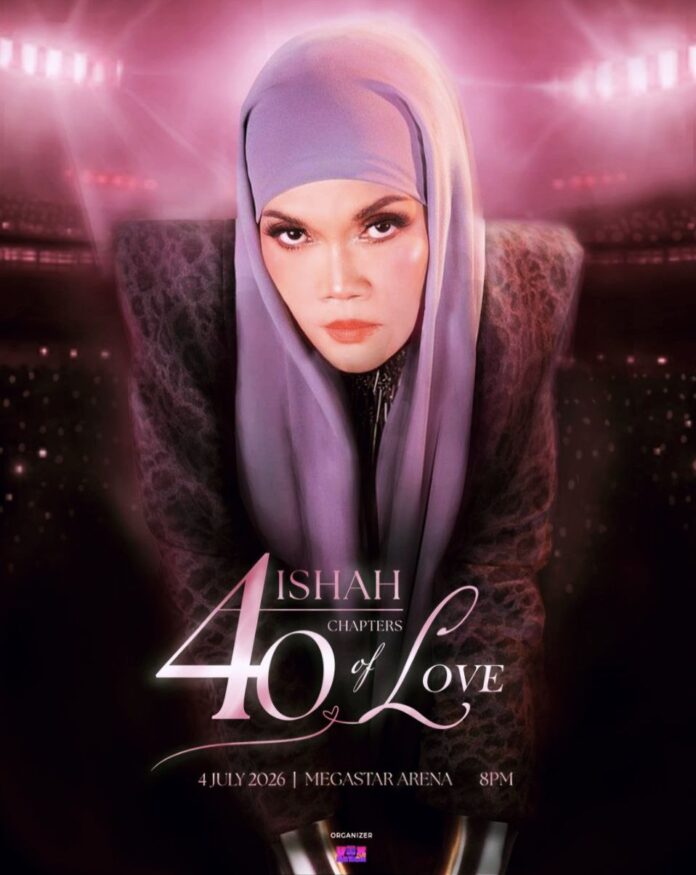 Impian anda untuk menyanyi bersama-sama Aishah atau Wan Aishah Wan Ariffin, 61, bakal termakbul jika anda hadir ke konsert “Aishah 40 Chapters of Love”, yang akan berlangsung pada 4 Julai 2026, jam 8 malam di Megastar Arena, Kuala Lumpur.